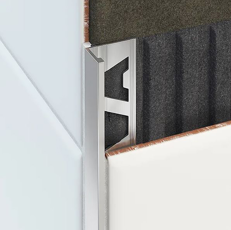 An Aluminium Mill Finish angle for tile edge protection. Provides a decorative finish and protects adjacent tile edges.