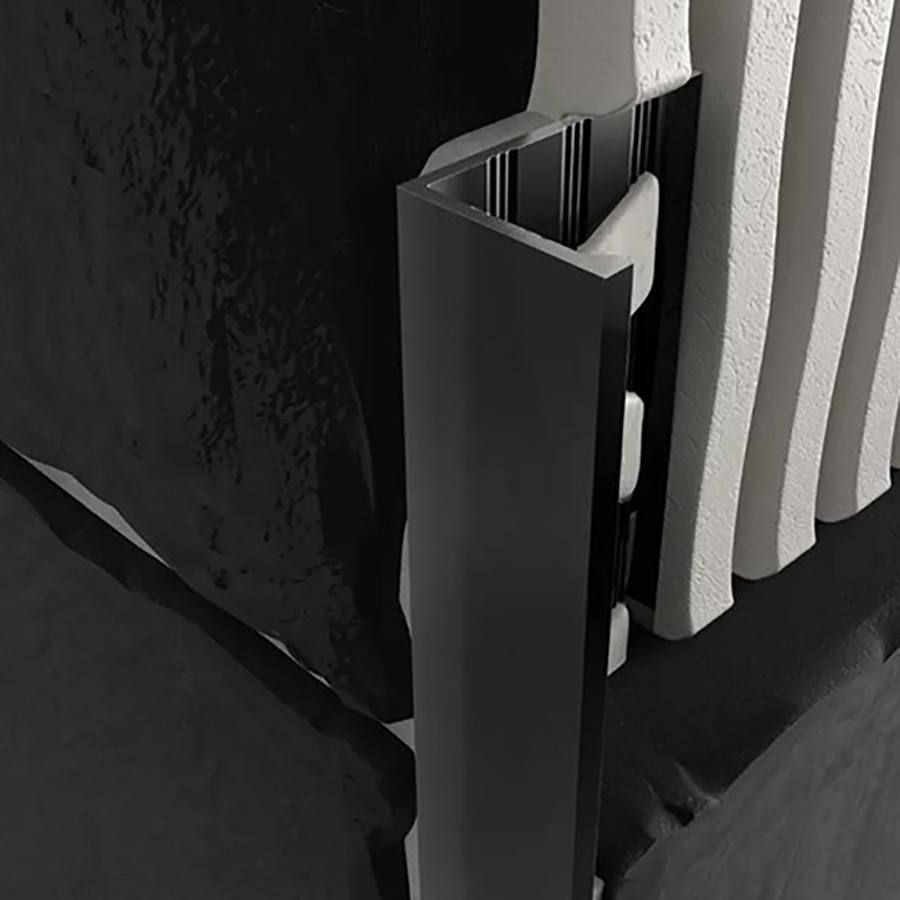 An Aluminium profile for protecting and finishing tiled corners and edges. Provides a decorative finish and protects adjacent tile edges. Features a perforated anchoring leg for securing in adhesive or mortar bond below the tiled surface. Chemically pre-treated and polyester powder coated.