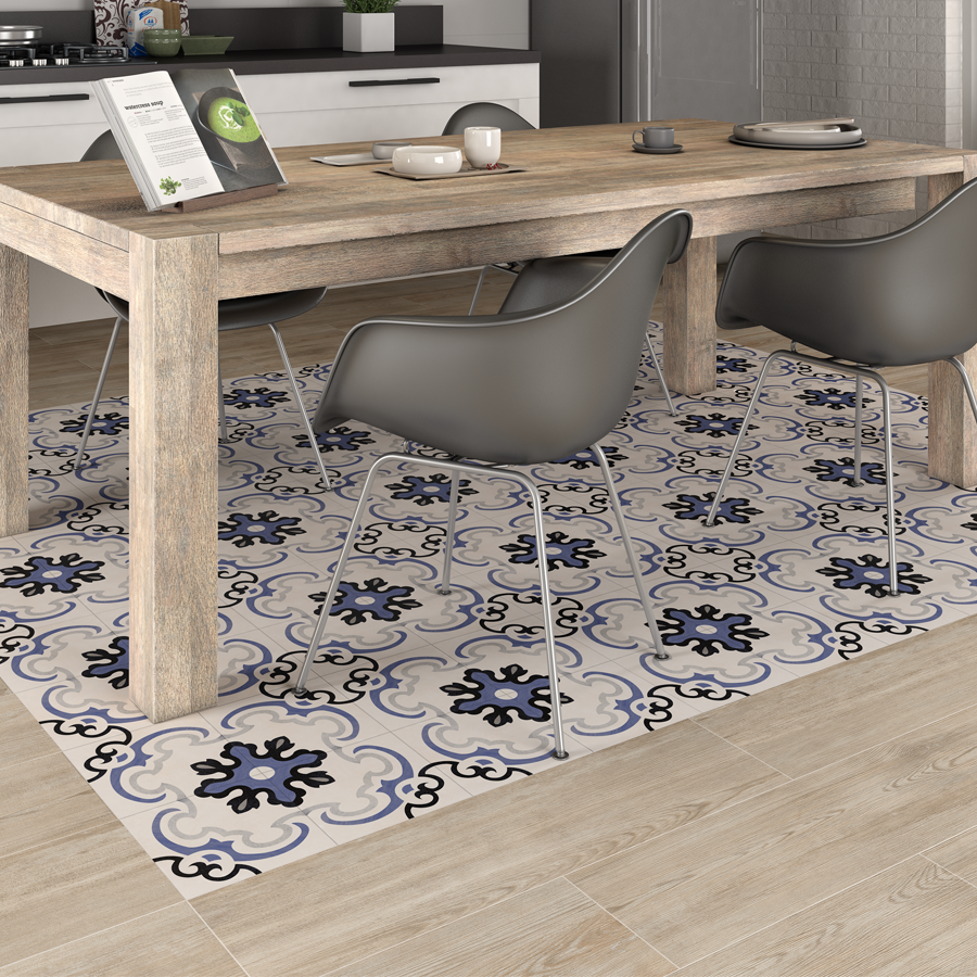 Beautifully crafted Spanish encaustic-look tiles. These beauties are porcelain, which mean they are durable and hard wearing, with no sealing or maintenance required. They are non-rectified, which means if you have an uneven floor, these edges will help hide imperfections.